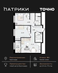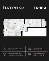 Флагманский проект группы компаний Точно - жилой комплекс бизнес-класса Патрики, это 10 домов разной этажности расположившихся на 28,5 гектарах. Жилой комплекс с концепцией город в город - прогулочные аллеи, парковая территория, 3 детских сада, 2 школы - одна из которых частная, Гранд аллея с ресторанами, фонтанами и модными бутиками, уникальные мафы и ландшафтный дизайн, создают особую атмосферу - место в котором хочется находиться. В Патриках предусмотрен и креативный кластер Цех, который включает в себя пространство для коворкинга, фудкорт, бутики, детский комплекс, лектории, фитнес-клуб Баланс с волной для сёрфа. Но и это еще не все ГК Точно уважает историю, поэтому мы сохранили 2 башни - наследство от завода ''Сельмаш'' исторический арт-объект назвали Мастер и Маргарита.
