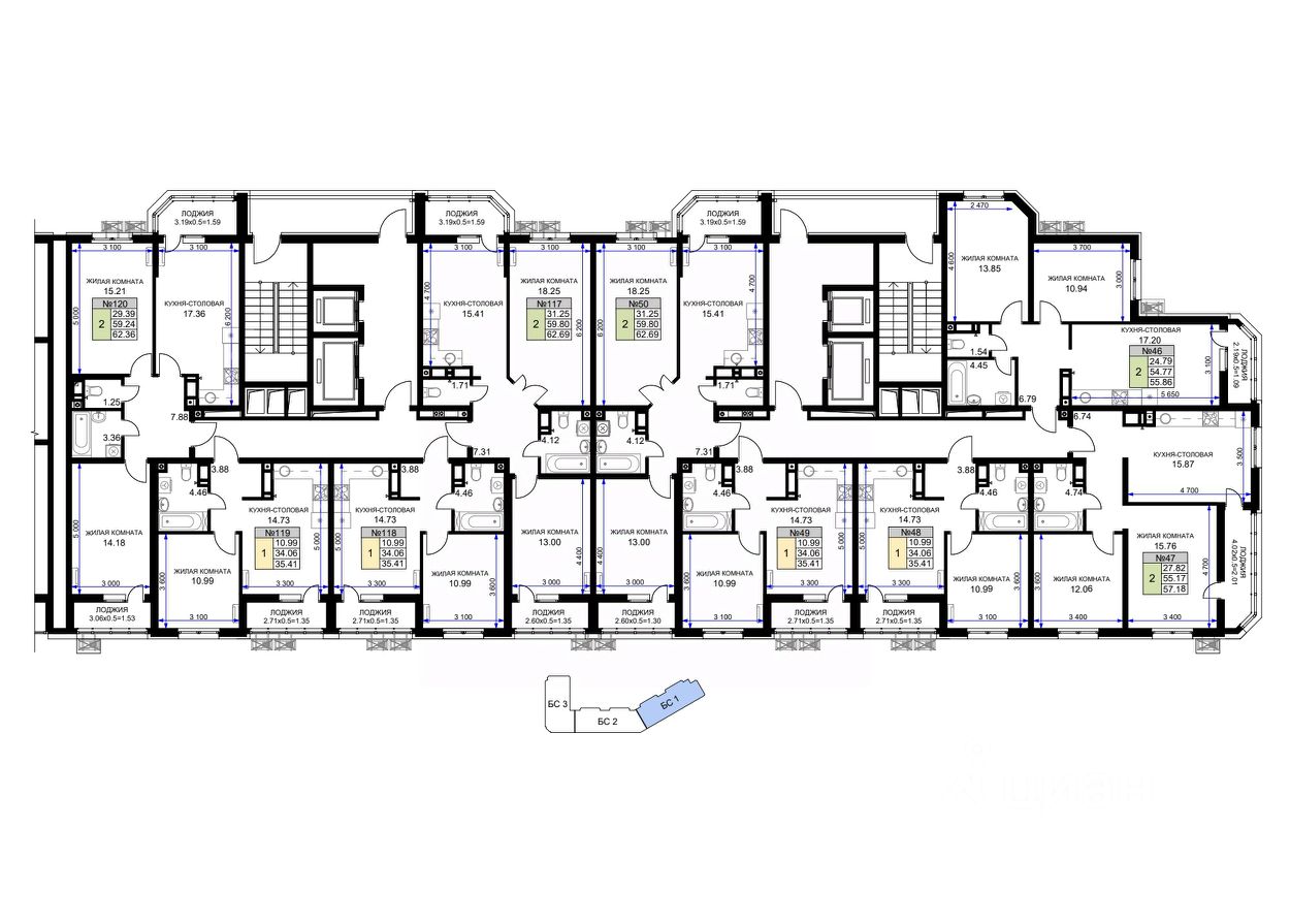 62 м² · Этаж 6 из 18