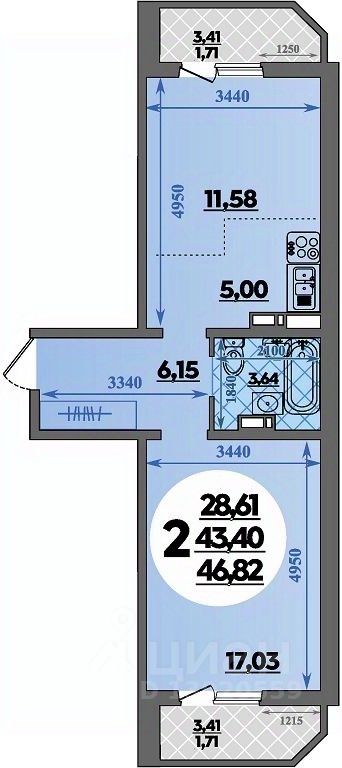 46 м² · Этаж 15 из 16