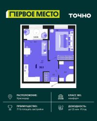 Жилой район ''Первое место''- один из самых масштабных проектов в России. На территории 71 га 18 кварталов, 31 дом переменной этажности от 8 до 18 этажей, собственный парк 9 га, храмовый комплекс, пешеходный бульвар ''Круг семьи'', детские и спортивные площадки, мангальные зоны и различные локации для отдыха. В шаговой доступности действующие муниципальные образовательные учреждения: школа на 1 100 мест и детский сад на 250 мест. Помимо этого, в жилом районе ''Первое место'' построятся школа на 1700 мест с крытым 25-метровым бассейном и 5 детских садов на 1 490 мест. На первых этажах многоуровневых парковок ''паркхабов'' разместится более 61 тыс м2 коммерческих помещений. Жителям будут доступны собственный фитнес-центр, кафе, рестораны и магазины. В каждом подъезде предусмотрены дизайнерские холлы в стиле лобби отелей, консьерж-сервис, лапомойки, отдельные колясочные и велосипедные. Также в домах будут просторные кладовые помещения и комнаты для хранения почты с почтоматами для получения посылок из маркетплейсов.
