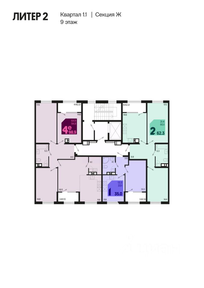 62 м² · Этаж 9 из 18