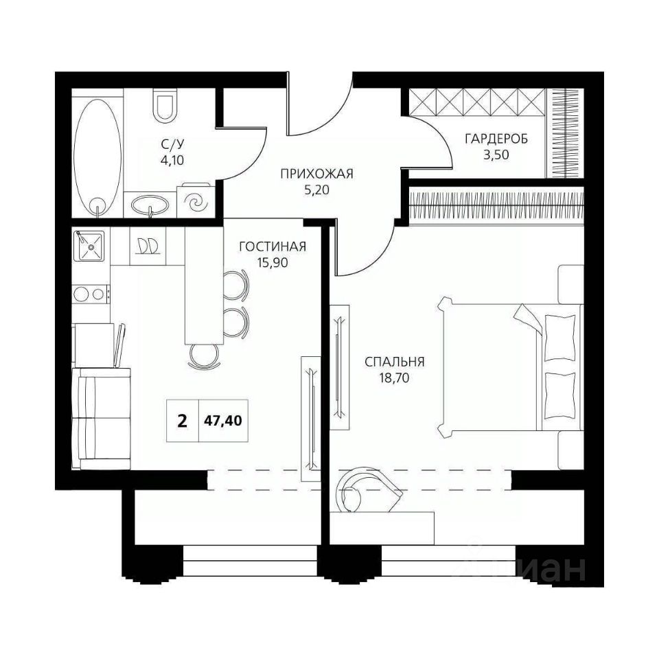 47 м² · Этаж 5 из 19