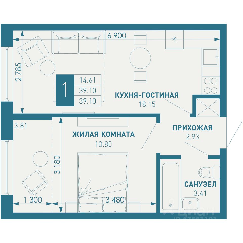 39 м² · Этаж 7 из 9