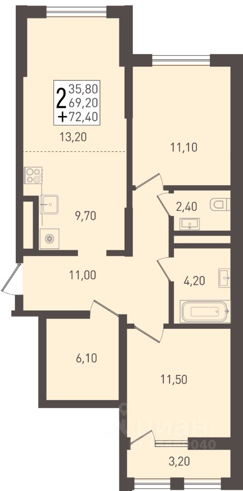 Продаётся 2-комнатная квартира в строящемся доме (Литер 10), срок сдачи: IV-кв. 2025, общей площадью 57.6 кв.м., на 3 этаже. Новый жилой комплекс ''Nova Vita'' от застройщика МЕТРИКС DEVELOPMENT расположен по адресу Краснодар, посёлок Берёзовый, улица имени А.Н. Лодыгина.