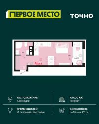 Продается студия площадью 33.56 кв. м. на 4 этаже 9 этажного дома, 1 подъезд, номер 31. Стоимость данного лота включает в себя ремонт, мебель и технику. Будут представлены 3 варианта обустройства квартиры: светлый, тонированный и авторский. Для более подробного ознакомления вы можете обратиться в отдел продаж. Жилой комплекс ''ИНАЧЕ в Молодежном'' включает в себя 14 домов комфорт+ класса переменной этажности с более чем 100 видами планировок, в том числе квартиры с террасами, двухуровневые квартиры и урбан виллы, детский сад на 350 мест, храм, 2 наземных паркинга, а также бульвар и прогулочные аллеи. Срок сдачи первой очереди 4 квартал 2026 года Жилой комплекс находится в Молодежном — тихом микрорайоне с атмосферой размеренной жизни. Рядом расположен зеленый сквер ''Изумрудный'' с зелеными деревьями и велодорожками. Молодежный — молодой район с готовой инфраструктурой. Всю бытовую и семейную можно легко организовать на расстоянии 10 минут от дома. Есть новая школа, два детских сада, поликлиника, работают магазины, аптеки и салоны красоты. Жилой комплекс расположен рядом с удобными выездами на ключевые городские дороги. Можно быстро доехать как в центр города, так и до моря по Ейскому шоссе. Главные чувства от прогулки по нашему району простота и легкость. Архитектуру мы проработали совместно с архитектурным бюро Маликова и создали район с современным лаконичным обликом. При этом мы учли сценарии жизни людей и современные тренды. В наших домах будут разноэтажные секции. Французские балконы и увеличенные окна. На фасадах не будет визуального шума: кондиционеры будут скрыты с специальных корзинах. По всей территории продумана безбарьерная сеть тротуаров и переходов. Любое перемещение — пешком или с коляской — станет комфортным. - На территории комплекса будут расположены детские и спортивные площадки, а также амфитеатр, арт-объект и храм. - 40% территории занимает озеленение с более чем 50 видами растений. - Хранить автомобиль с комфортом и беречь его от осадков помогут два наземных многоуровневых паркинга. Кроме крытых паркингов, на территории есть открытые — в достаточном числе для жителей и гостей района. - Проект включает в себя строительство современного детского сада и так же в пешей доступности находятся 2 школы. - На первых этажах мы создадим коммерческие помещения с планировками, которые помогают бизнесу. Умный проект коммерции включает удобные входные группы, высокие потолки и панорамные окна, приглашающие заглянуть внутрь. - Эстетика холла продолжает природную идею района. Дизайнерские холлы выполненные в натуральных цветах с живыми деревьями включают в себя места для ожидания, встреч, санузлы, колясочные и постаматы. - Система аудиомультирум в каждой квартир - распределение аудио- и видео-сигналов по всей квартире. Для более подробного ознакомления вы можете обратиться в отдел продаж.