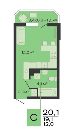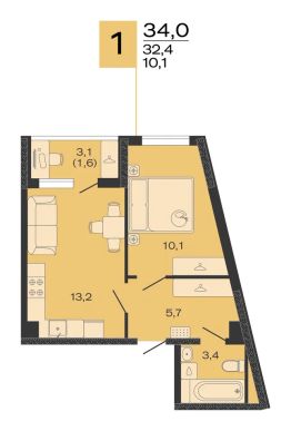 34 м2