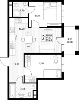 52 м2