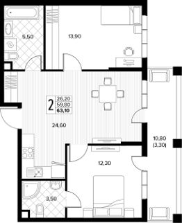 Продаётся 2-комнатная квартира в строящемся доме (поз.8), срок сдачи: II-кв. 2026, общей площадью 52.6 кв.м., на 5 этаже. Новый жилой комплекс ''Кипарис'' от застройщика ''AVA'' расположен по адресу: Россия, Краснодарский край, муниципальный округ Анапа, село Сукко, Мирная улица