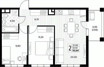 52 м2