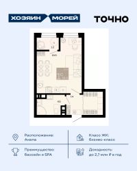 Откройте для себя мир комфорта и роскоши в жилом комплексе бизнес-класса ''Хозяин морей''. 9 домов от 8 до 12 этажей окружены благоустроенной территорией с прогулочными дорожками, бассейнами, детскими площадками, пространством для спорта и отдыха, двумя садиками и просторной школой. Здесь представлены разнообразные планировки: от комфортабельных студий площадью 33 кв.м до просторных семейных квартир с уникальными видами на бескрайнее море — идеальная комбинация уюта и статуса!