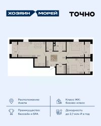 Откройте для себя мир комфорта и роскоши в жилом комплексе бизнес-класса ''Хозяин морей''. 9 домов от 8 до 12 этажей окружены благоустроенной территорией с прогулочными дорожками, бассейнами, детскими площадками, пространством для спорта и отдыха, двумя садиками и просторной школой. Здесь представлены разнообразные планировки: от комфортабельных студий площадью 33 кв.м до просторных семейных квартир с уникальными видами на бескрайнее море — идеальная комбинация уюта и статуса!