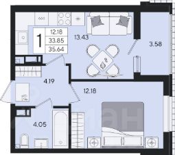 1-к квартира Показать на карте