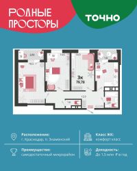 ''Родные просторы''- самодостаточный микрорайон, который реализован по принципу комплексного развития территории, где есть вся инфраструктура для комфортной жизни. На территории 41 га 29 домов от 9 до 24 этажей, уютные дворы со спортивными и игровыми площадками, социальные и коммерческие объекты, зеленые массивы и фонтаны. Главная точка притяжения ''Родных просторов'' - парк семейного отдыха площадью 9 га, 4,5 км прогулочных аллей, амфитеатр для мероприятий, кинофестивальная площадка. Особая гордость микрорайона современная школа на 1550 мест и 3 детских сада ''Ладушки'', ''Веснушки'' и ''Топотушки'' на 880 малышей. В центре микрорайона строятся фитнес-клуб BALANCE с акватермальным комплексом и собственная поликлиника, площадью более 5000 кв.м. Уже открыт православный храм Святых Первоверховных апостолов Петра и Павла.