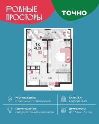 ''Родные просторы''- самодостаточный микрорайон, который реализован по принципу комплексного развития территории, где есть вся инфраструктура для комфортной жизни. На территории 41 га 29 домов от 9 до 24 этажей, уютные дворы со спортивными и игровыми площадками, социальные и коммерческие объекты, зеленые массивы и фонтаны. Главная точка притяжения ''Родных просторов'' - парк семейного отдыха площадью 9 га, 4,5 км прогулочных аллей, амфитеатр для мероприятий, кинофестивальная площадка. Особая гордость микрорайона современная школа на 1550 мест и 3 детских сада ''Ладушки'', ''Веснушки'' и ''Топотушки'' на 880 малышей. В центре микрорайона строятся фитнес-клуб BALANCE с акватермальным комплексом и собственная поликлиника, площадью более 5000 кв.м. Уже открыт православный храм Святых Первоверховных апостолов Петра и Павла.