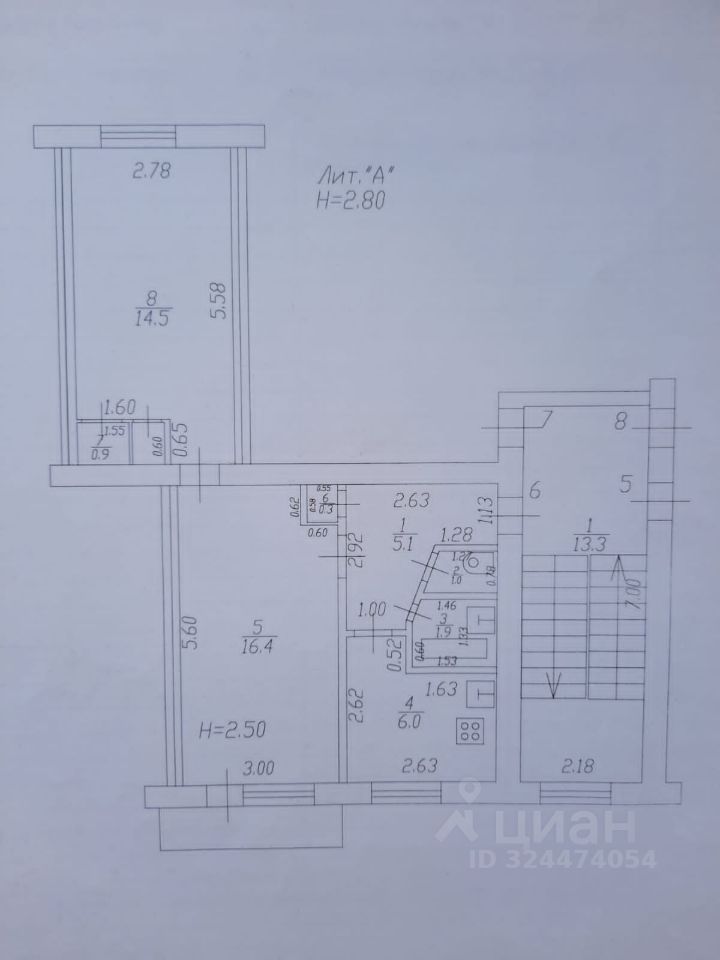2-к, Калинина, 350/5
