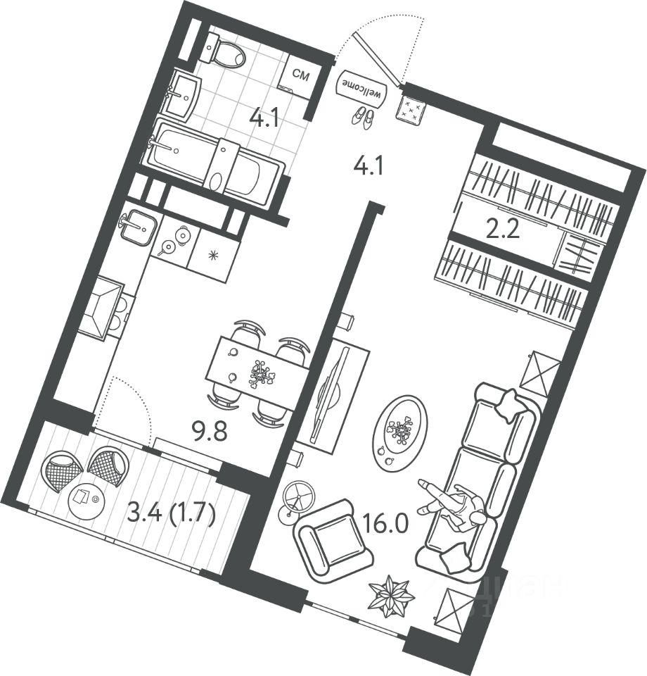 39 м² · Этаж 16 из 18