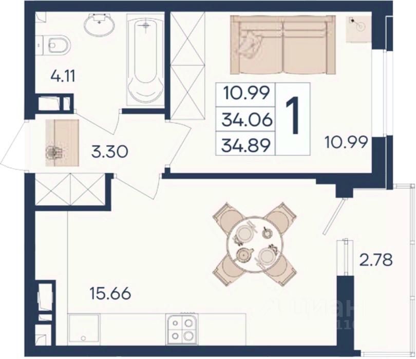 34 м² · Этаж 4 из 18