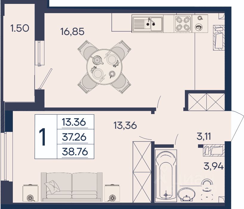 38 м² · Этаж 3 из 18