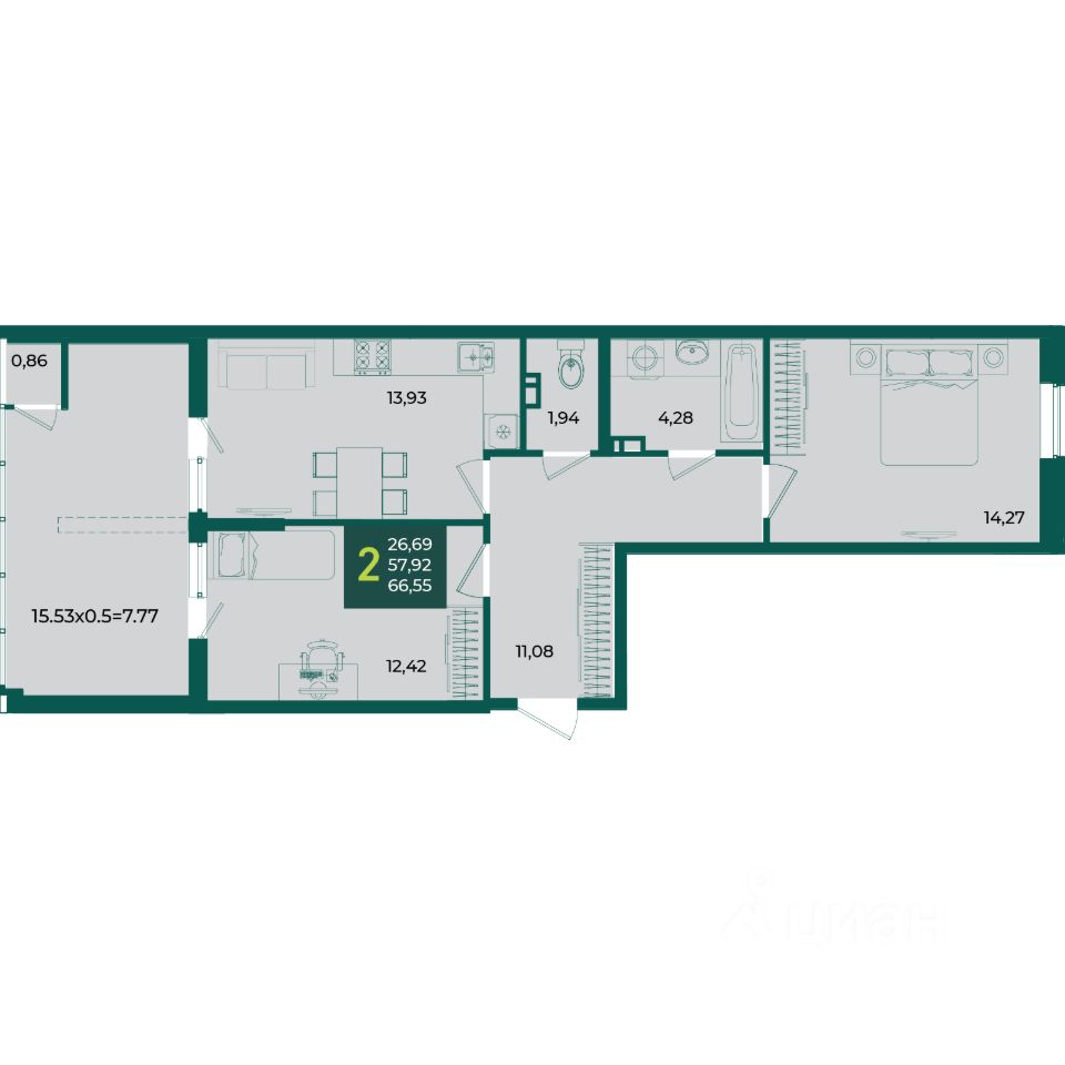 66 м² · Этаж 7 из 18