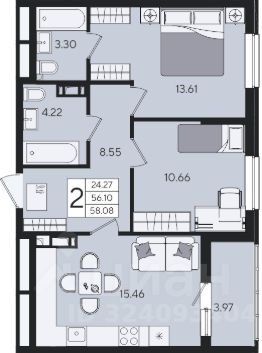 2-к квартира Показать на карте