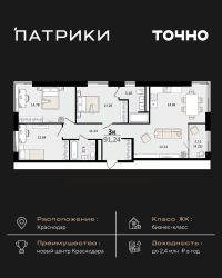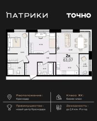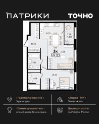 Флагманский проект группы компаний Точно - жилой комплекс бизнес-класса Патрики, это 10 домов разной этажности расположившихся на 28,5 гектарах. Жилой комплекс с концепцией город в город - прогулочные аллеи, парковая территория, 3 детских сада, 2 школы - одна из которых частная, Гранд аллея с ресторанами, фонтанами и модными бутиками, уникальные мафы и ландшафтный дизайн, создают особую атмосферу - место в котором хочется находиться. В Патриках предусмотрен и креативный кластер Цех, который включает в себя пространство для коворкинга, фудкорт, бутики, детский комплекс, лектории, фитнес-клуб Баланс с волной для сёрфа. Но и это еще не все ГК Точно уважает историю, поэтому мы сохранили 2 башни - наследство от завода ''Сельмаш'' исторический арт-объект назвали Мастер и Маргарита.