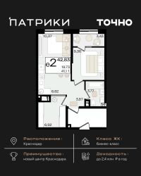 Флагманский проект группы компаний Точно - жилой комплекс бизнес-класса Патрики, это 10 домов разной этажности расположившихся на 28,5 гектарах. Жилой комплекс с концепцией город в город - прогулочные аллеи, парковая территория, 3 детских сада, 2 школы - одна из которых частная, Гранд аллея с ресторанами, фонтанами и модными бутиками, уникальные мафы и ландшафтный дизайн, создают особую атмосферу - место в котором хочется находиться. В Патриках предусмотрен и креативный кластер Цех, который включает в себя пространство для коворкинга, фудкорт, бутики, детский комплекс, лектории, фитнес-клуб Баланс с волной для сёрфа. Но и это еще не все ГК Точно уважает историю, поэтому мы сохранили 2 башни - наследство от завода ''Сельмаш'' исторический арт-объект назвали Мастер и Маргарита.
