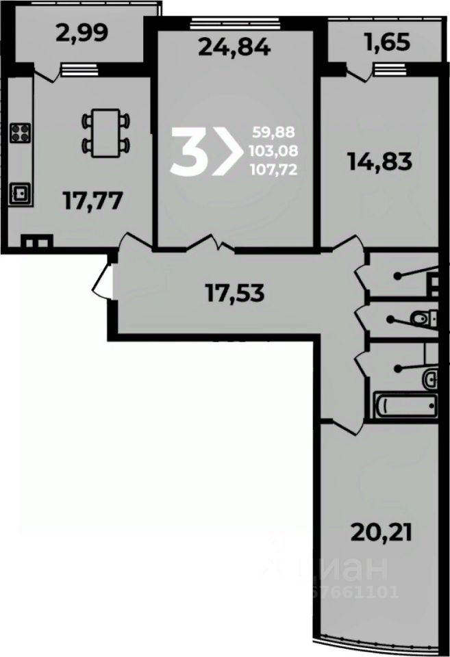 107 м² · Этаж 6 из 19