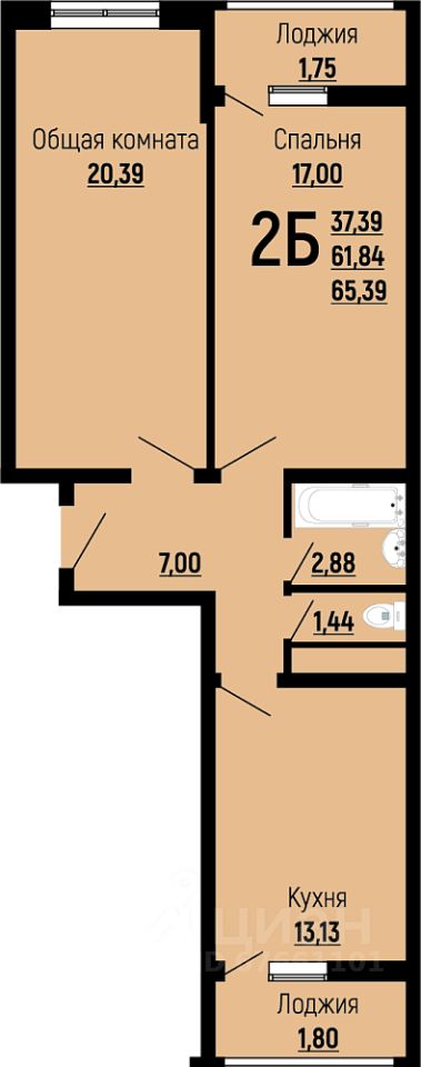 Продаётся 2-комнатная квартира в строящемся доме (Литер 10), срок сдачи: II-кв. 2026, общей площадью 65.39 кв.м., на 17 этаже. Расположение, транспортная доступность Жилой квартал ''Славянка'' из десяти 16- и 21-этажных домов и 5-уровневого наземного паркинга с земельным участком 8 гектар расположен в молодом Славянском районе на северо-западе Краснодара. В ста метрах проходит улица Красных Партизан, по которой можно быстро доехать в центр города или соседние районы, а в километре улица Западный обход, открывающая дорогу на трассу Р-268 (на север в сторону Тимашевска) или на северо-запад к Азовскому морю и в Крым. В пешей доступности расположены Академический сквер и Ботанический сад. Инфраструктура Цокольные этажи корпусов отданы под коммерческие помещения, где будут открываться магазины, офисы сервисных служб, компаний сферы услуг и пр. объекты инфраструктуры. Около домов комплекса расположены супермаркеты ''Пятерочка'' и ''Магнит'', аптека. В радиусе двух километров можно найти два детских сада, две общеобразовательных школы (16 и 63), школу-интернат 3, гипермаркет ''Лента'', оздоровительный центр ''Аквалига'', отделение почты и банка, торговый центр с кинотеатром, городскую больницу и Микрохирургию глаза им.Федорова. В шаговой доступности открыты фитнес-клубы KingFit и ''Европа Фитнес''. Район молодой, инфраструктура развивается по мере появления новых жилых комплексов. Рядом останавливаются автобусы, на которых можно доехать до школы 45 и 90, детской школы искусств, торгового комплекса ''Галерея Краснодар'', рынка и ТРЦ ''Мега Адыгея-Кубань'' с гипермаркетами Ашан, Леруа Мерлен, Metro, Спортмастер и М.Видео. Надежность застройщика ООО ''КубаньГрадИнвестСтрой'' было создано в 2012 году, хотя компания имеет опыт работы на строительном рынке Краснодара с 2006 года. Застройщик довольно быстро завоевал положительную репутацию. Среди очевидных преимуществ компании по сравнению с конкурентами: земельные участки на всех объектах оформлены в собственность, кредитные средства на строительство не привлекаются (только свои ресурсы и инвестиции дольщиков), используется монолитно-кирпичная технология домостроения. Кроме того, предлагаются гибкие условия покупки (материнский капитал, ипотека от нескольких банков, беспроцентная рассрочка до трех месяцев) и скидки пенсионерам, врачам, учителям, многодетным семьям, студентам, инвалидам. Компания владеет строительной техникой и занимается производством бетона. Проект жилого комплекса ''Славянка'' начат в 2016 году, к этому времени были уже сданы в эксплуатацию ''Ставропольский'' и ''Парус''. Продажи оформляются по договорам ДДУ в соответствии с ФЗ-214. Архитектура В состав ЖК ''Славянка'', расположенного в селитебной зоне города на территории 8 га, входит десять 16-21-этажных корпусов на 4620 квартир и 5-уровневый наземный паркинг на 3200 машиномест. Представлены студии 25-28 кв. м, однокомнатные квартиры 33-36 кв. м и двухкомнатные 54-63 кв. м. Вместо балконов сделаны лоджии. В двухкомнатных раздельный санузел, в студиях и одн