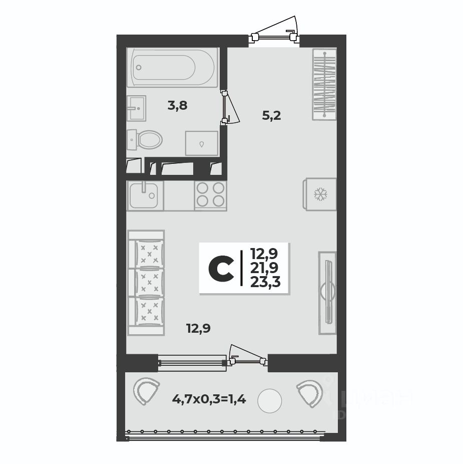 21 м² · Этаж 4 из 18