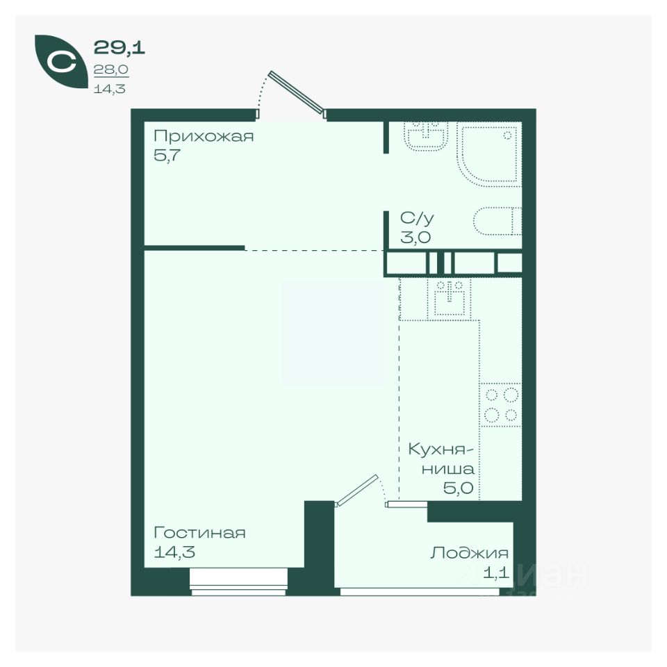 29 м² · Этаж 14 из 18