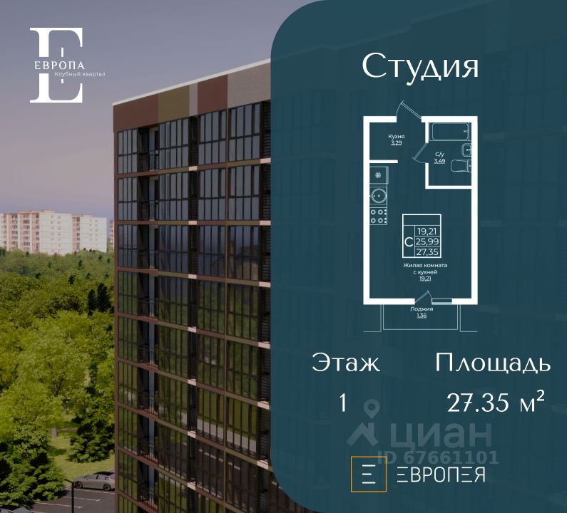 Европа-Сити - уютный жилой район, гармонично сочетающий в себе яркие дизайнерские решения, прекрасную экологию и благоустроенные общественные пространства. Семейный квартал в Европейском стиле, с особым типом застройки. Его корпуса имеют разную высоту и выстроены ступенчато: в центре района расположены 9-этажные, а по периметру - 7-этажные дома. Большие современные детские площадки, малоэтажная застройка. В шаговой доступности Лебединое озеро, площадь с фонтаном и другие знаковые места района. Стоимость является предварительной и может меняться в зависимости от выбранной ипотечной программы и дополнительных опций. Для уточнения стоимости необходимо обратиться в отдел продаж ГК ''Европея''.