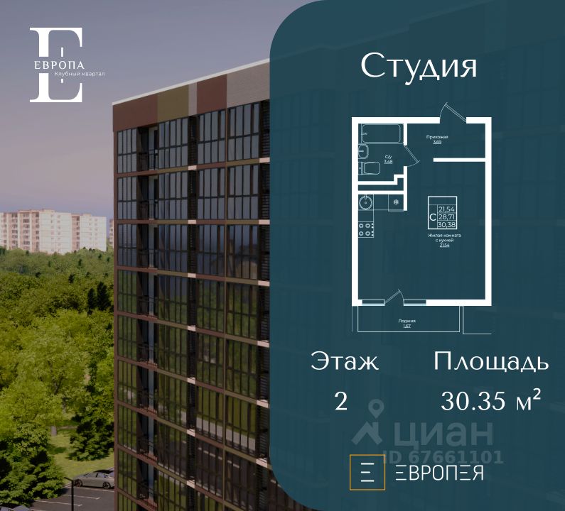 Клубный квартал Европа — уютный жилой район, гармонично сочетающий в себе яркие дизайнерские решения, прекрасную экологию и благоустроенные общественные пространства. Расположен в уникальной локации рядом с культовой ''Немецкой Деревней''. Всего за несколько минут вы сможете прогуляться до живописного Лебединого озера, площади с фонтаном и других знаковых мест этого уютного и развитого района. На территории квартала созданы все условия для комфортной жизни: развитая транспортная инфраструктура — как для владельцев автомобилей, так и для тех, кто предпочитает общественный транспорт. Внутри комплекса вас ждут современные детские и спортивные площадки, зоны отдыха и безопасные прогулочные маршруты. В районе установлена система видеонаблюдения, что гарантирует высокий уровень безопасности. Квартиры с смарт-планировками предоставляют полную свободу для воплощения ваших идей. Создайте пространство, отражающее ваш стиль и потребности, наслаждайтесь комфортом и индивидуальностью в каждом уголке вашей новой квартиры. Звоните прямо сейчас и станьте частью этого современного, безопасного и комфортабельного жилого квартала ''Европа''. Ваша новая квартира ждет именно вас! Стоимость является предварительной и может меняться в зависимости от выбранной ипотечной программы и дополнительных опций. Для уточнения стоимости необходимо обратиться в отдел продаж ГК ''Европея''.