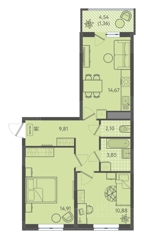 56 м² · Этаж 6 из 18