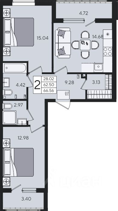 66 м² · Этаж 2 из 8