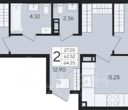 2-к квартира Показать на карте
