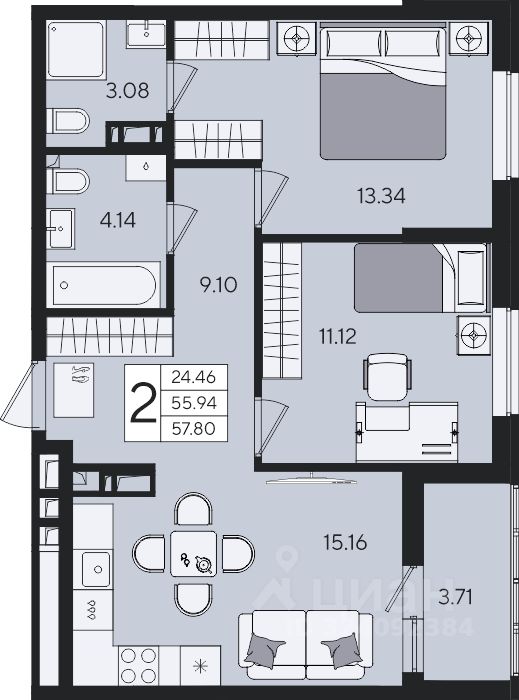 57 м² · Этаж 4 из 8