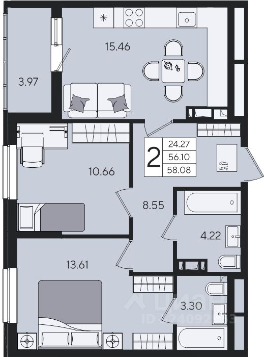 58 м² · Этаж 8 из 8