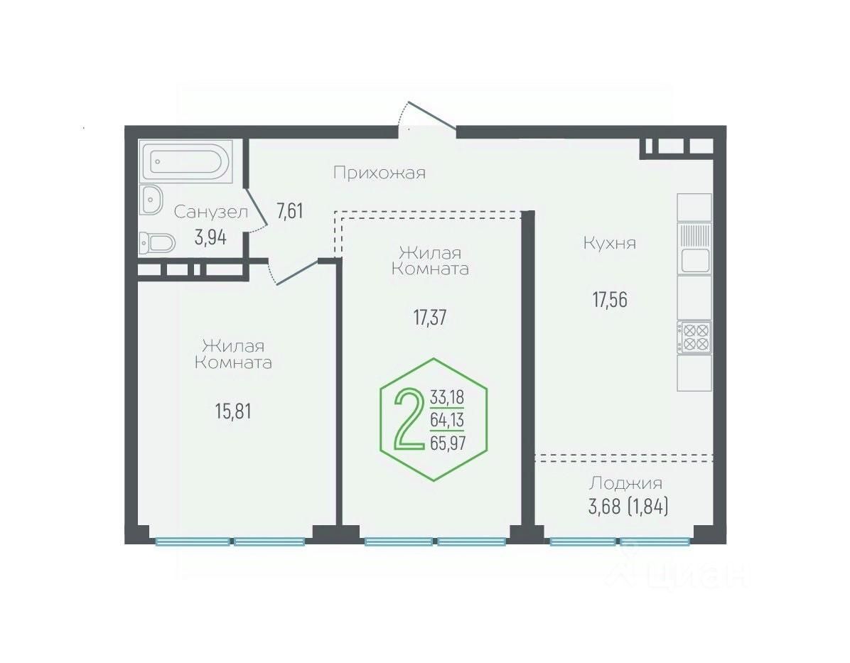 56 м² · Этаж 17 из 24