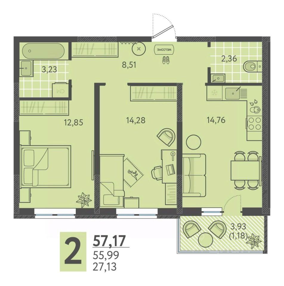 57 м² · Этаж 6 из 18