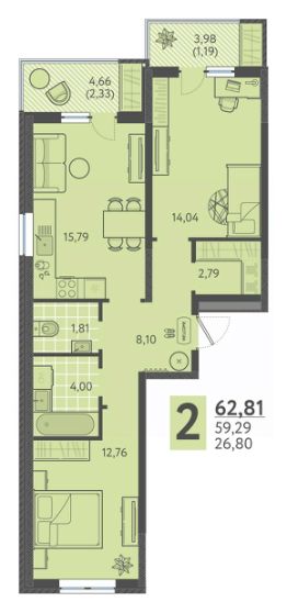 57 м2