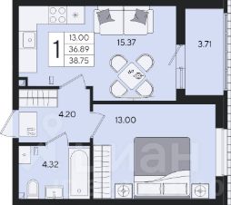 1-к квартира Показать на карте