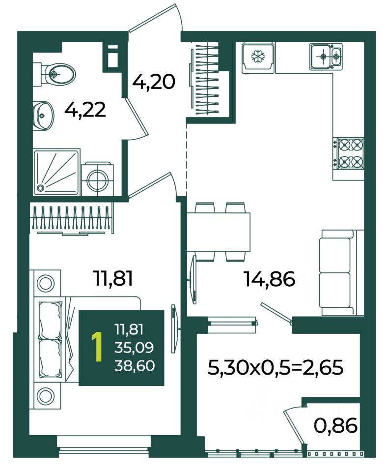 38 м² · Этаж 4 из 9