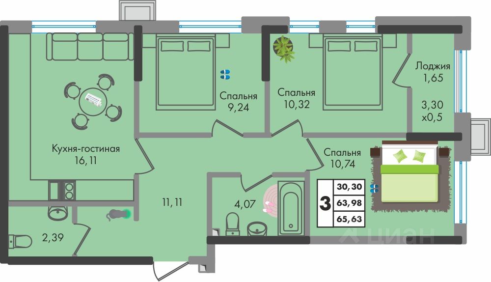3-комнатная квартира с умной планировкой в жилом комплексе Зеленая территория от надежного застройщика СЗ Флагман в Краснодаре. Покупка квартиры в ЖК Зелёная территория это : дворы без машин с большими детскими площадками, баланс природы и городской среды, библиотека, конгресс-центр, фитнес-центр, много парковочных мест, наземная многоуровневая парковка, выделенная велосипедная дорожка на длинной прогулочной аллее в собственном закрытом от посторонних парке, зарядные станции для автомобилей, спортивные площадки для детей и взрослых, собственный парк на территории комплекса - 1,2 Га, ТРК Красная площадь, Леруа Мерлен - 10 минут на машине, школа в 2 минутах ходьбы от дома, 3 минуты до детского сада, рядом находятся ледовый дворец Iсе Раlасе, спортивный комплекс ''Баскет Холл'', школа ЦСК и теннисные корты, выезд на Ейское шоссе - дорога на море за час без пробок. За более чем 20 лет группа компаний Флагман построила: 9 ЖК, 4 200 квартир 24 многоэтажных дома 2 коттеджных посёлка 7 коммерческих БЦ Подберите 3-комнатную квартиру по вашим параметрам в ЖК Зелёная территория от застройщика СЗ Флагман. Звоните или нажимайте Заказать звонок - мы сформируем подборку планировок, просчитаем стоимость ежемесячного платежа и пришлем вам.