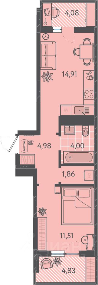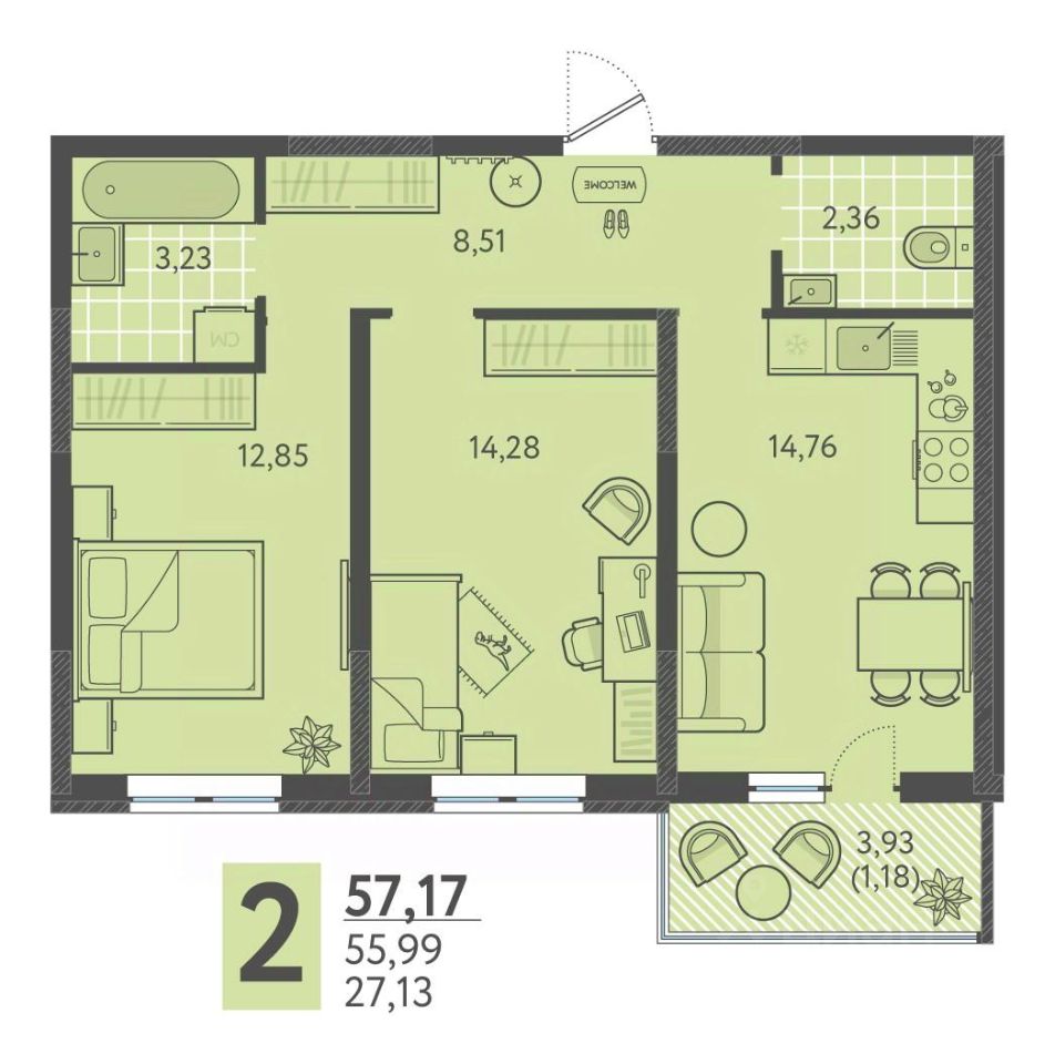 57 м² · Этаж 11 из 18