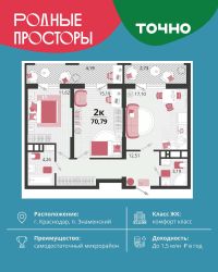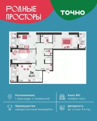 ''Родные просторы''- самодостаточный микрорайон, который реализован по принципу комплексного развития территории, где есть вся инфраструктура для комфортной жизни. На территории 41 га 29 домов от 9 до 24 этажей, уютные дворы со спортивными и игровыми площадками, социальные и коммерческие объекты, зеленые массивы и фонтаны. Главная точка притяжения ''Родных просторов'' - парк семейного отдыха площадью 9 га, 4,5 км прогулочных аллей, амфитеатр для мероприятий, кинофестивальная площадка. Особая гордость микрорайона современная школа на 1550 мест и 3 детских сада ''Ладушки'', ''Веснушки'' и ''Топотушки'' на 880 малышей. В центре микрорайона строятся фитнес-клуб BALANCE с акватермальным комплексом и собственная поликлиника, площадью более 5000 кв.м. Уже открыт православный храм Святых Первоверховных апостолов Петра и Павла.