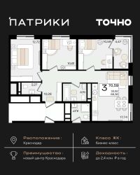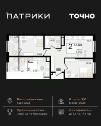 Флагманский проект группы компаний Точно - жилой комплекс бизнес-класса Патрики, это 10 домов разной этажности расположившихся на 28,5 гектарах. Жилой комплекс с концепцией город в город - прогулочные аллеи, парковая территория, 3 детских сада, 2 школы - одна из которых частная, Гранд аллея с ресторанами, фонтанами и модными бутиками, уникальные мафы и ландшафтный дизайн, создают особую атмосферу - место в котором хочется находиться. В Патриках предусмотрен и креативный кластер Цех, который включает в себя пространство для коворкинга, фудкорт, бутики, детский комплекс, лектории, фитнес-клуб Баланс с волной для сёрфа. Но и это еще не все ГК Точно уважает историю, поэтому мы сохранили 2 башни - наследство от завода ''Сельмаш'' исторический арт-объект назвали Мастер и Маргарита.