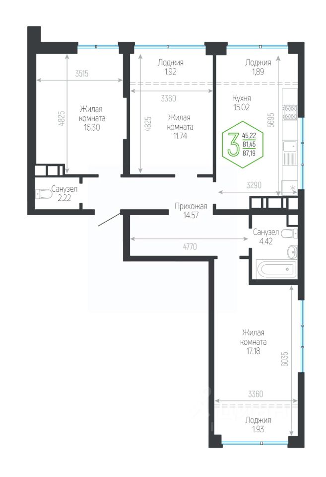 87 м² · Этаж 19 из 24