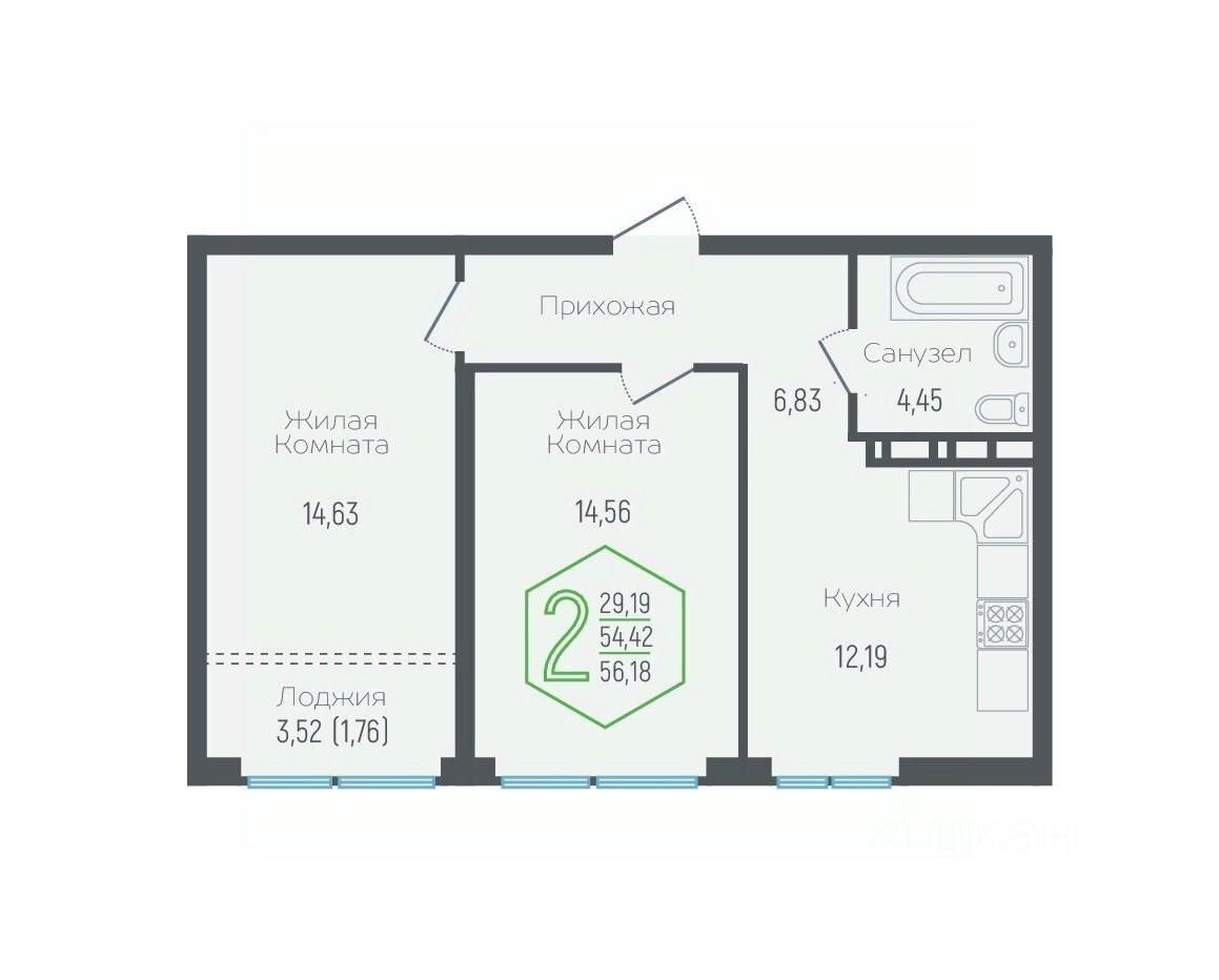56 м² · Этаж 8 из 16