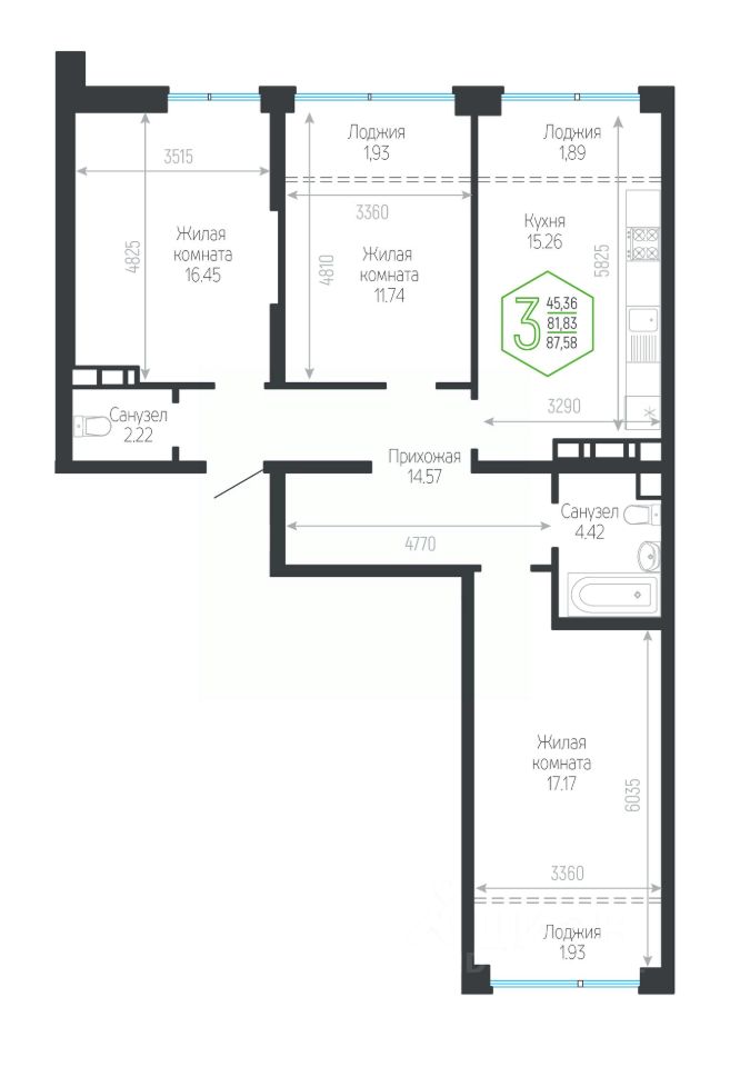 87 м² · Этаж 15 из 16