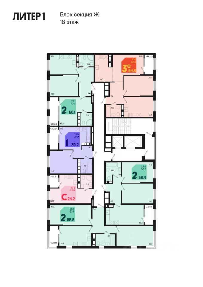 58 м² · Этаж 18 из 18
